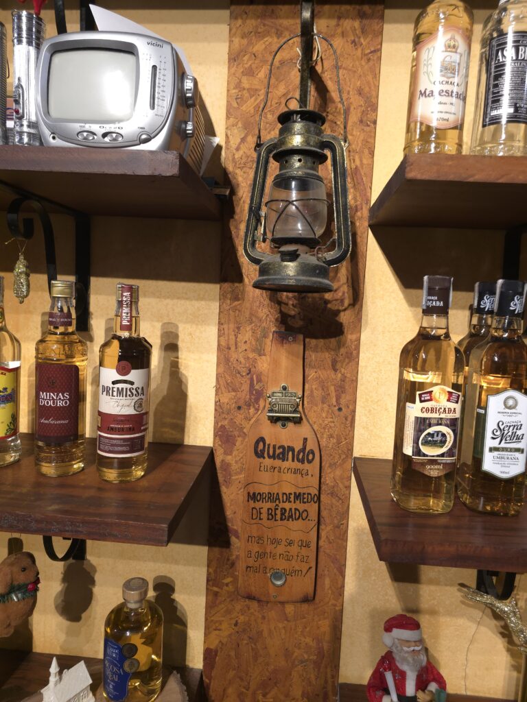Depois de muito tempo ouvindo a frase “você precisa ir lá”, no ano passado finalmente conheci a loja e bar Embaixada da Cachaça. Assim que entrei, a minha primeira reação foi a de tentar esconder minha cara de surpresa ao ver tantos rótulos juntos (alguns que já nem são mais fabricados, verdadeiras relíquias) e tantos detalhes na decoração que mais parecia uma galeria de arte cheia de eletrônicos e aparelhos dos anos 1980 até o início dos anos 2000. Olhando para a coleção de cachaças, a sensação foi de ter chegado num parque de diversões. Confesso que cada vez que vou lá, encontro alguma coisa nova que ainda não tinha chamado a atenção do meu olho nas prateleiras, seja um novo rótulo, um novo copo comemorativo ou item de decoração.